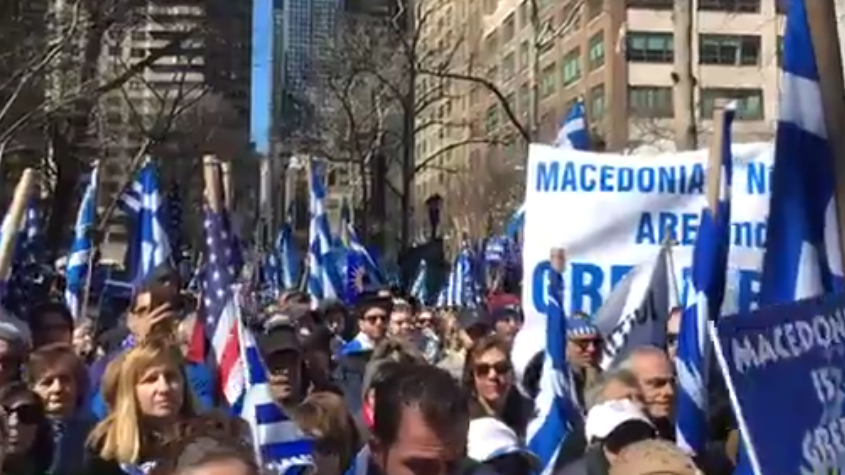 Greeks in New York Protest Macedonian Claims Posted on March 18, 2018February 10, 2022 by Thanasi Papoulias Thousands of Greeks showed up outside of the United Nations on Sunday, 3/18, to protest the Macedonian claims by FYROM.