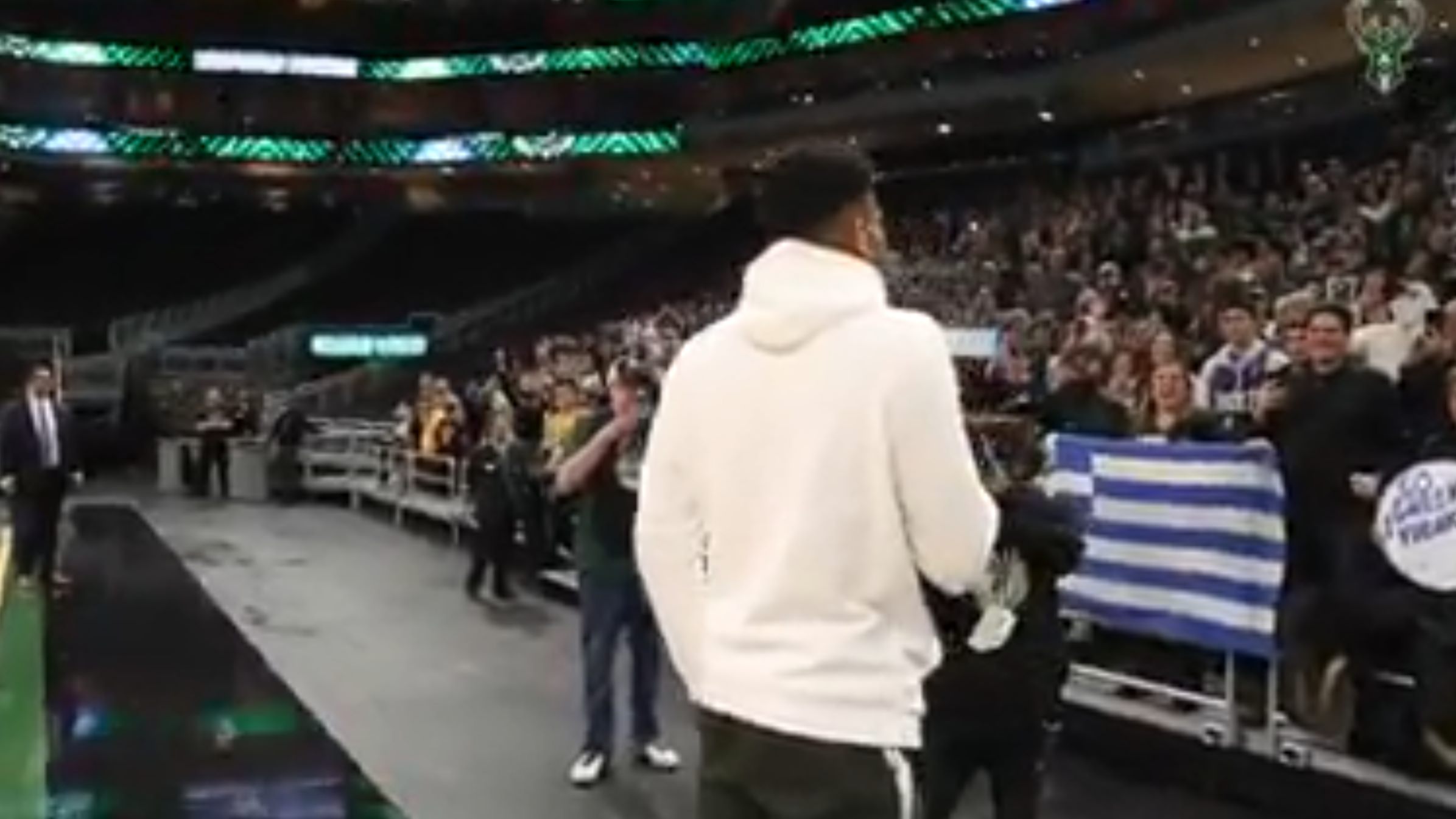 After a Bucks win, the Greek Freak, Giannis Antetokounmpo, addressed the fans and sang the Greek National Anthem with them! 👌🇬🇷🏀